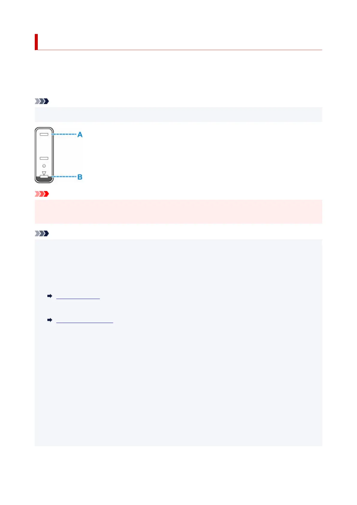 When ink is near the lower limit line (B), ink is running low. Refill the ink tank.