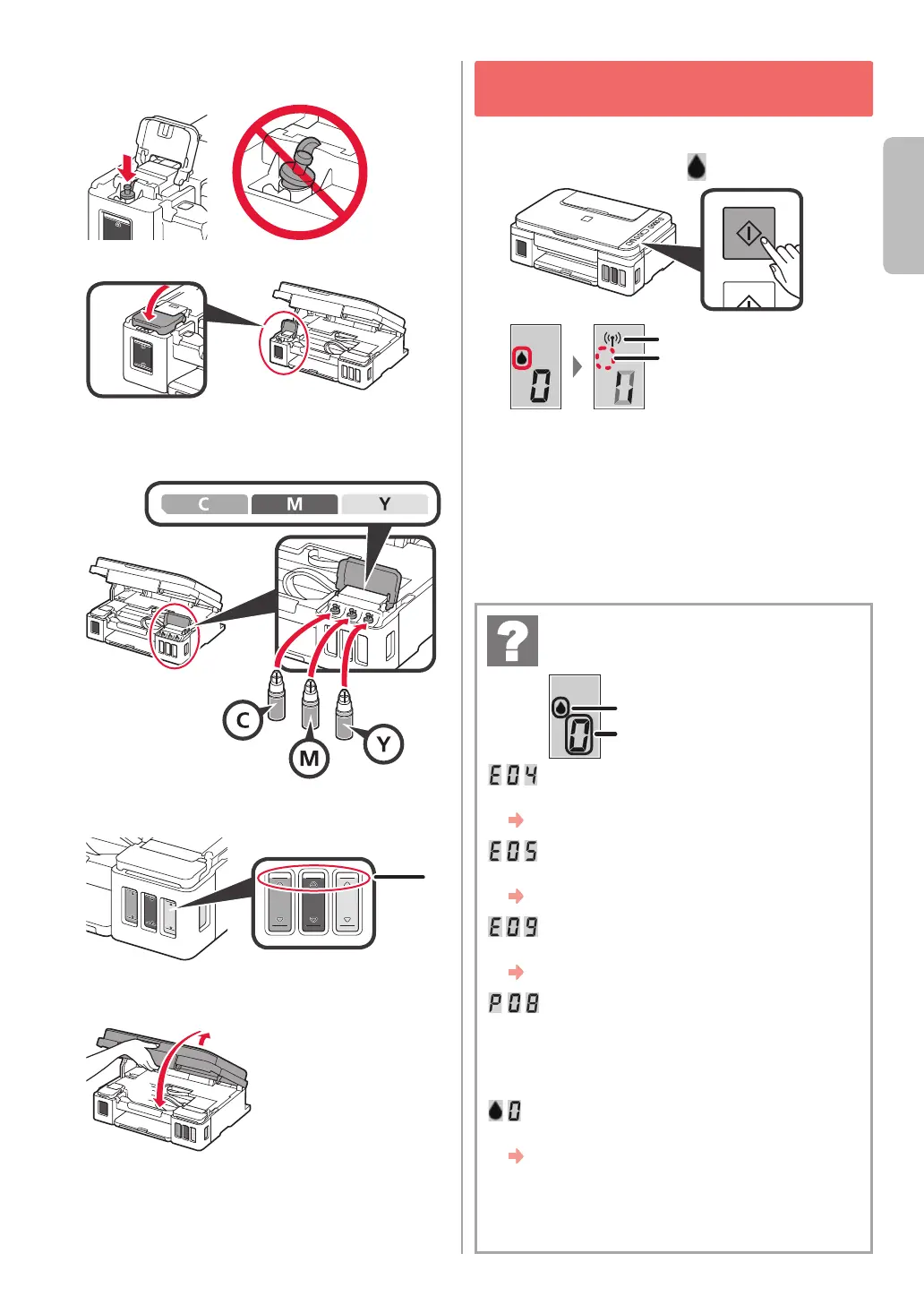 Chiudere il coperchio serbatoio dell'inchiostro.