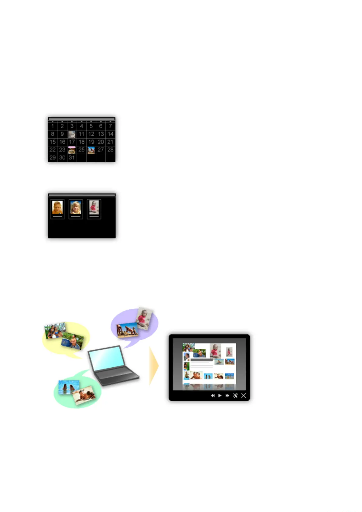 You can organize photos easily as you can display them not only by folder but also by calendar, event,