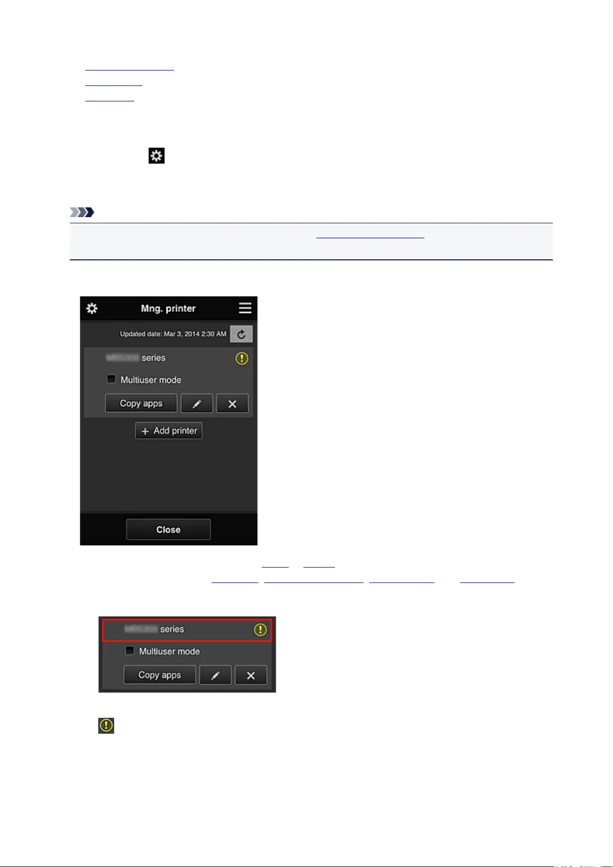From the Mng. printer screen, you can check or update printer information registered to the Canon