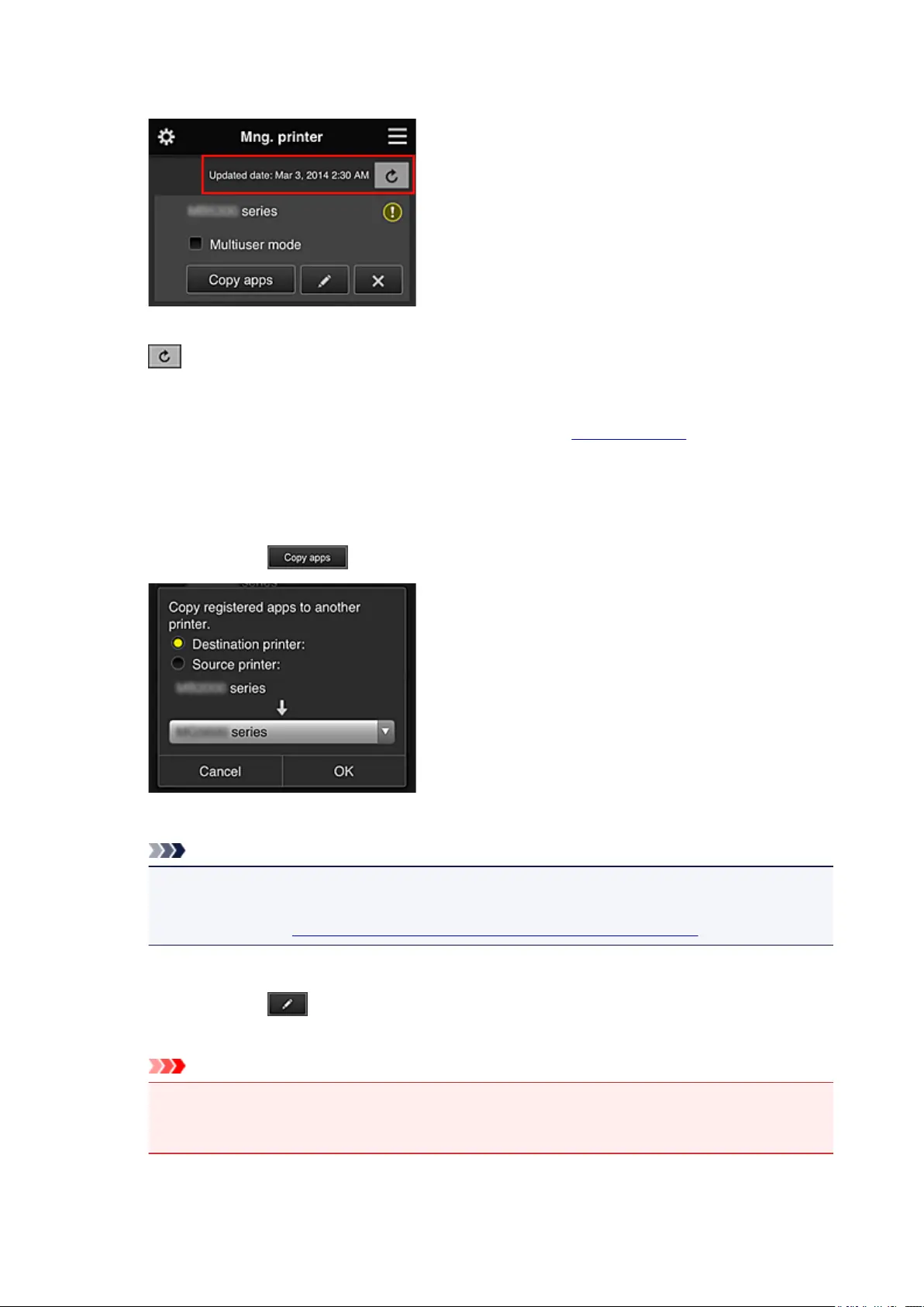 Select this to copy apps added in the selected printer to another printer.