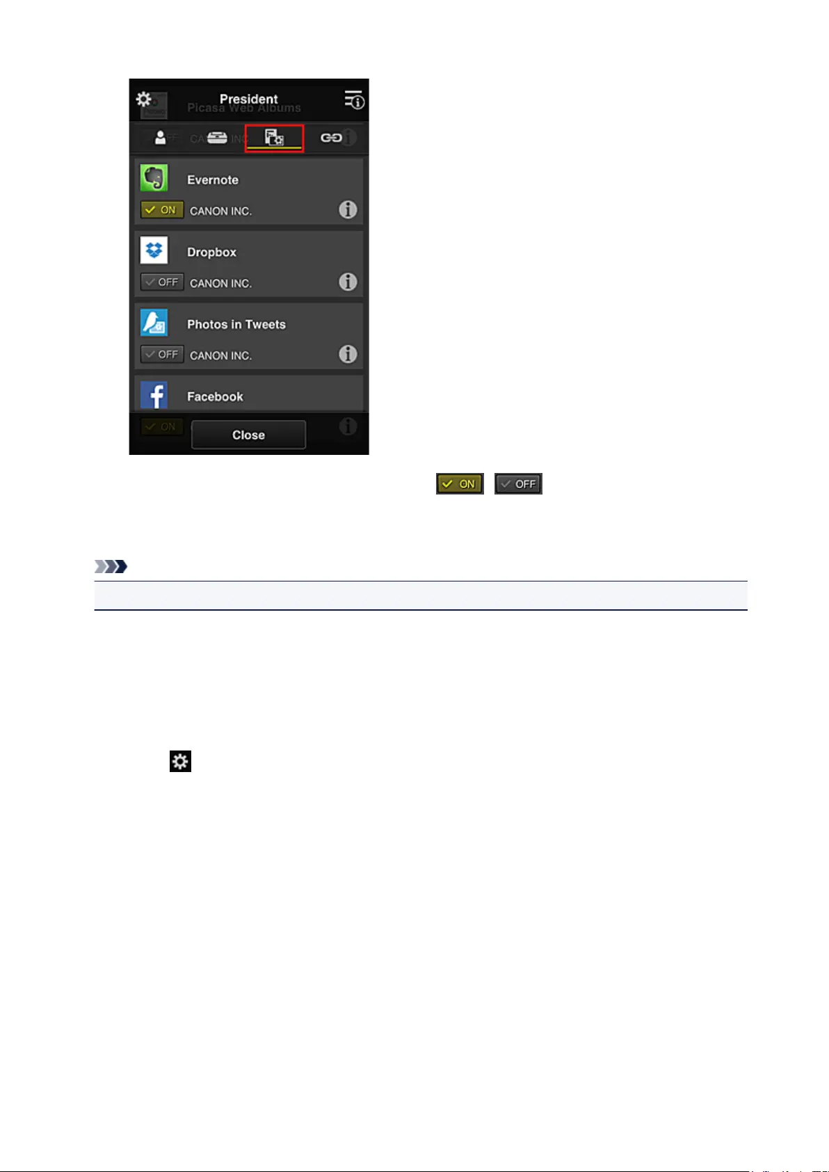 To set the apps to be used on the printer, use the following procedure provided by this service.