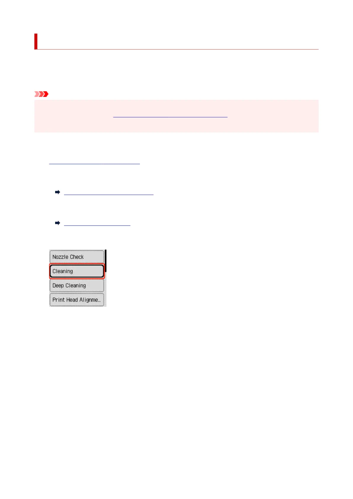 pattern. Cleaning unclogs the nozzles and restores the print head condition. Cleaning the print head