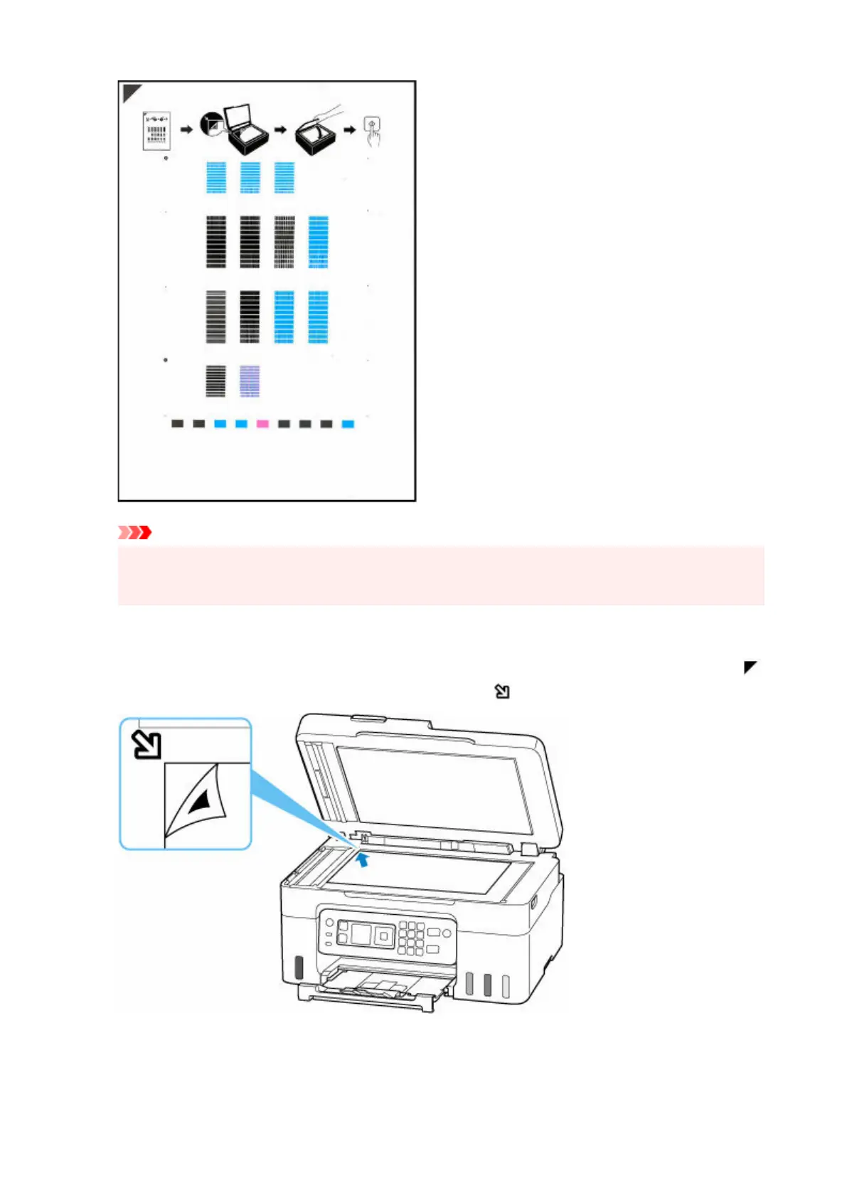7. Confirm the message, then place print head alignment sheet on platen.7.