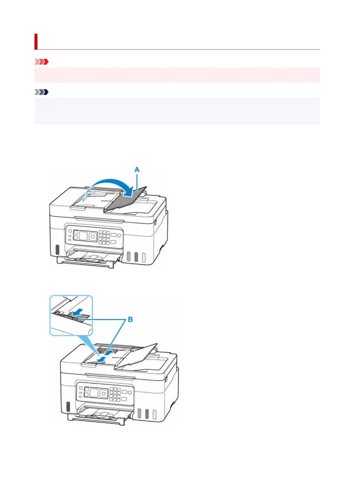 • Be careful not to let anything get inside the document output slot. It may cause damage.•