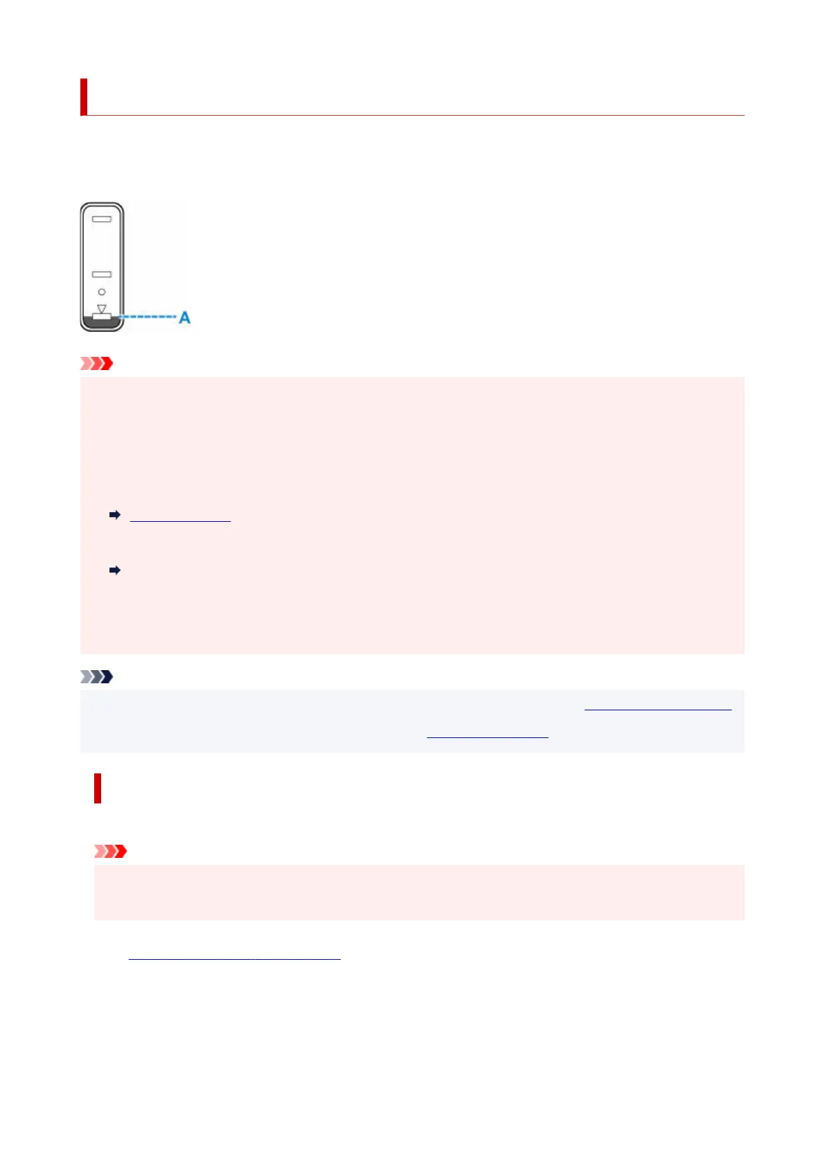 • If the remaining ink level notification function is disabled, visually inspect the remaining ink and refill the