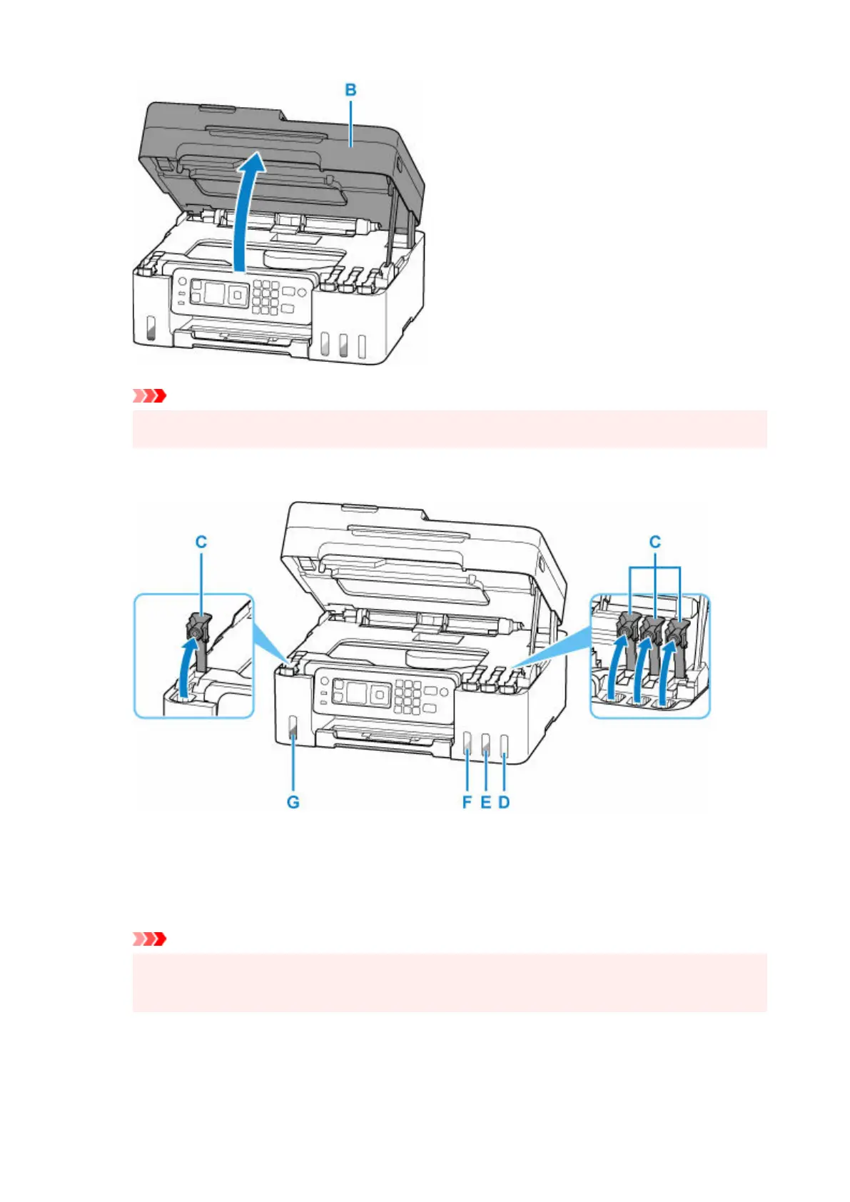 Open the tank cap (C) of the ink tank to be refilled.