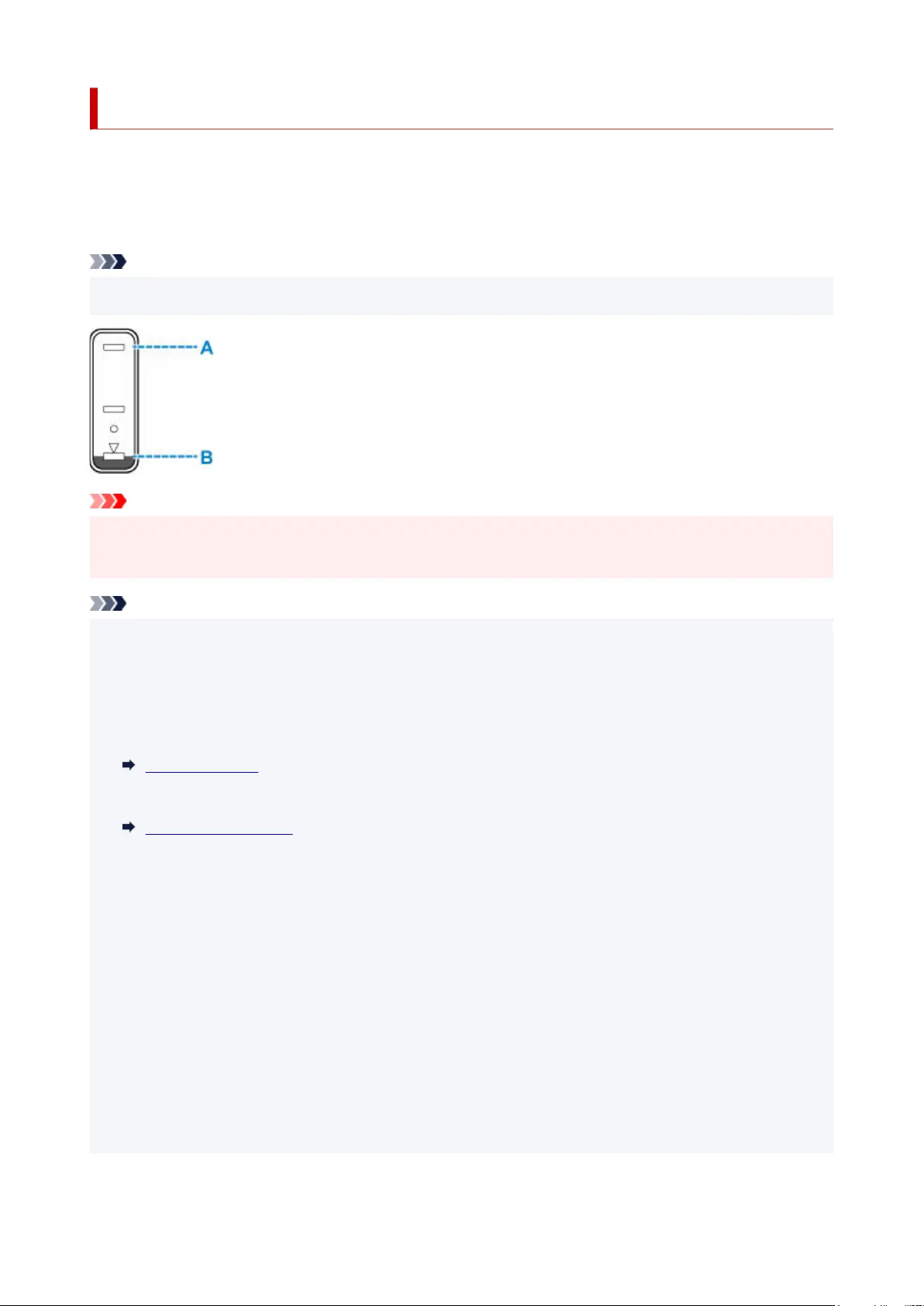 When ink is near the lower limit line (B), ink is running low. Refill the ink tank.