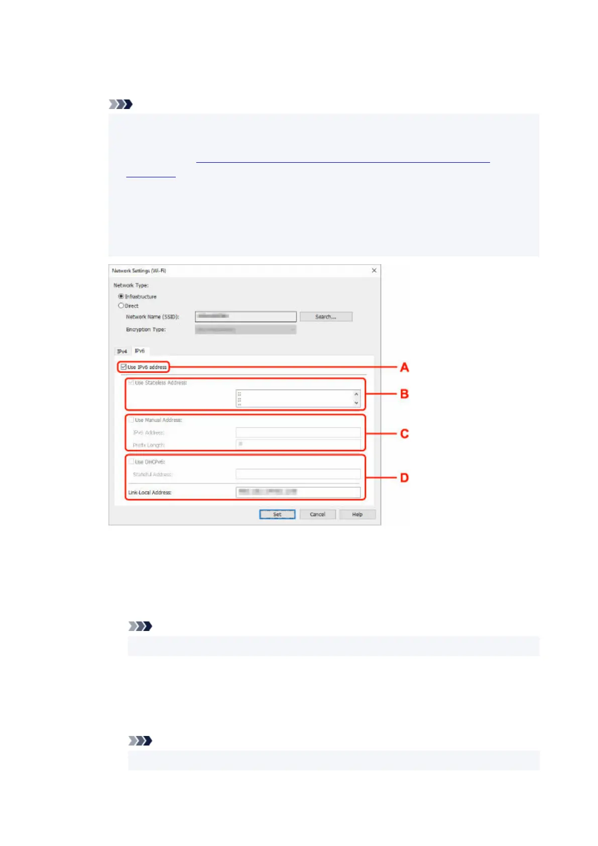If you select a USB connected printer on step 4, you cannot perform IPv6 settings depending