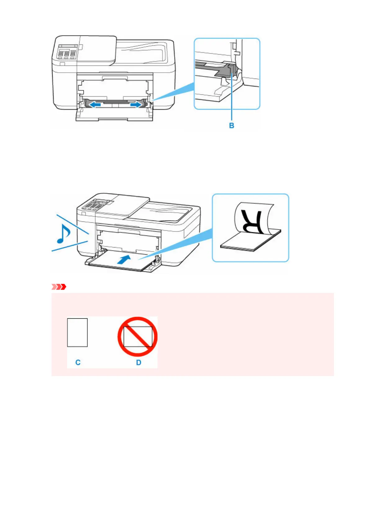• Always load paper in portrait orientation (C). Loading paper in landscape orientation (D) can•