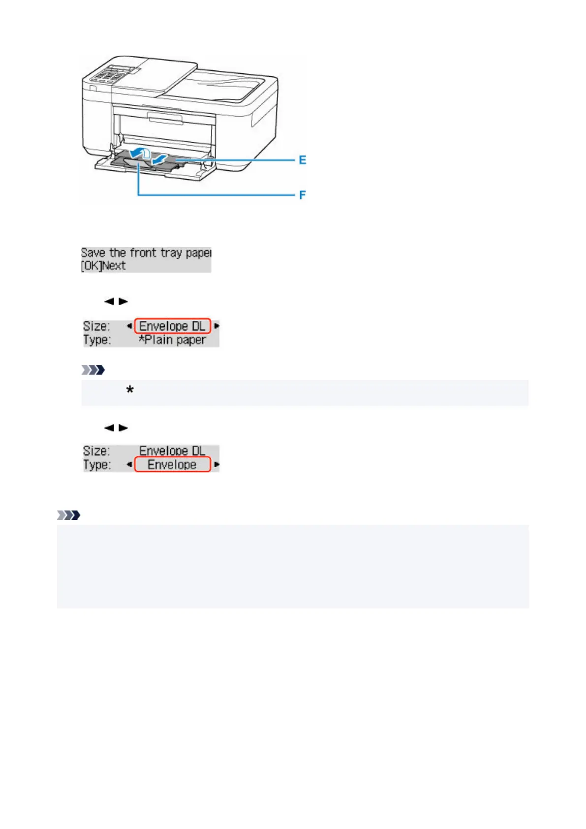 Use button to select size of loaded envelopes in front tray and press OK button.