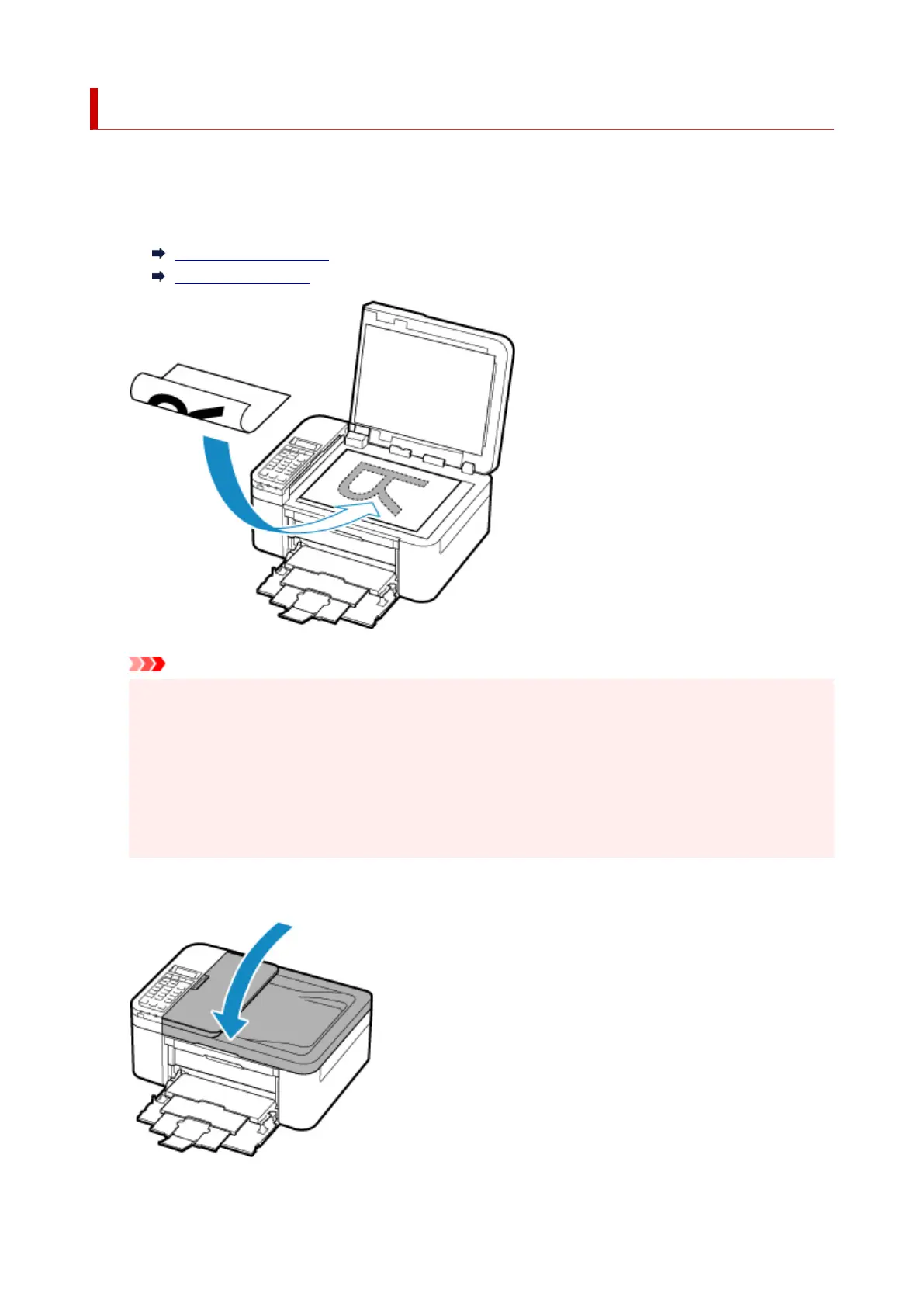 • Do not put any pressure of 4.4 lb (2.0 kg) or more on the platen glass, such as pressing down