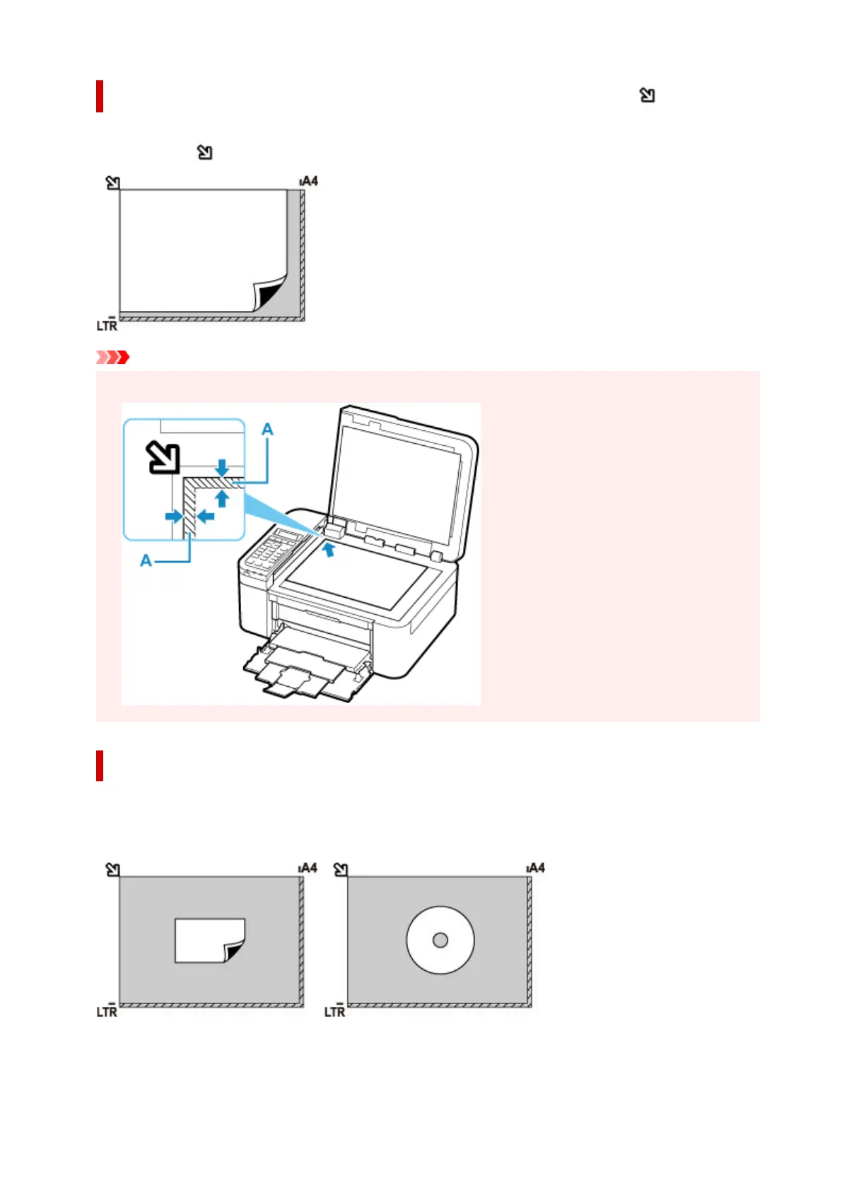 • The printer cannot scan the striped area (A) (0.04 inch (1 mm) from the edges of the platen glass).