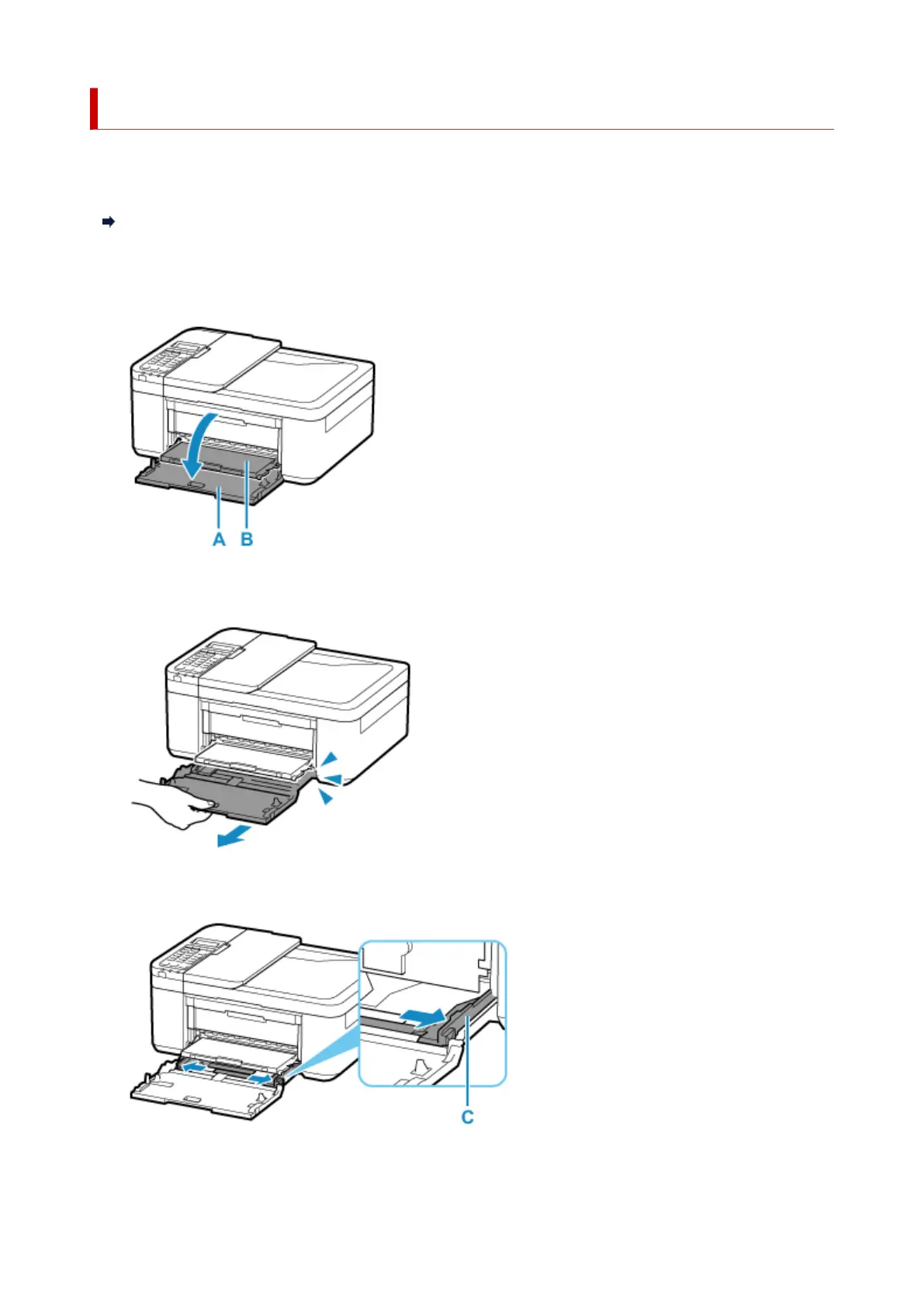 Use the right paper guide (C) to slide both paper guides all the way out.