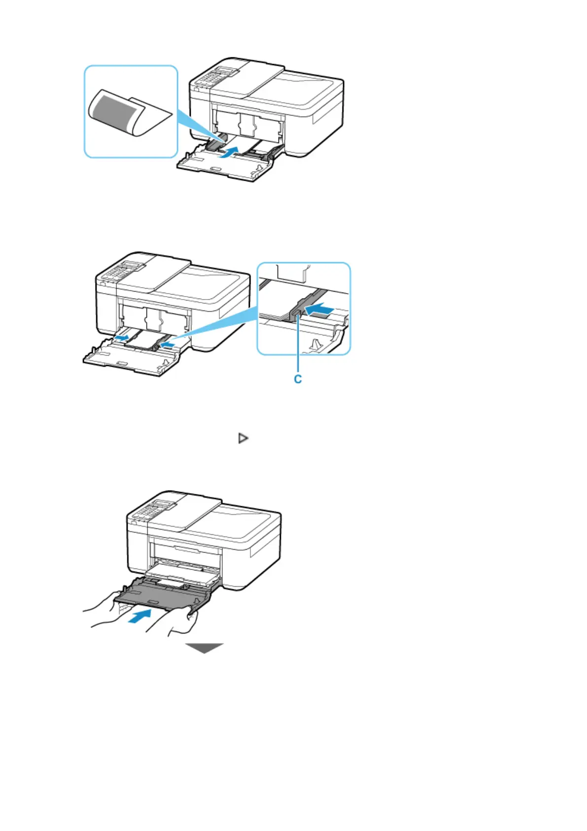 Slide the right paper guide (C) to align the paper guides with both sides of the paper stack.