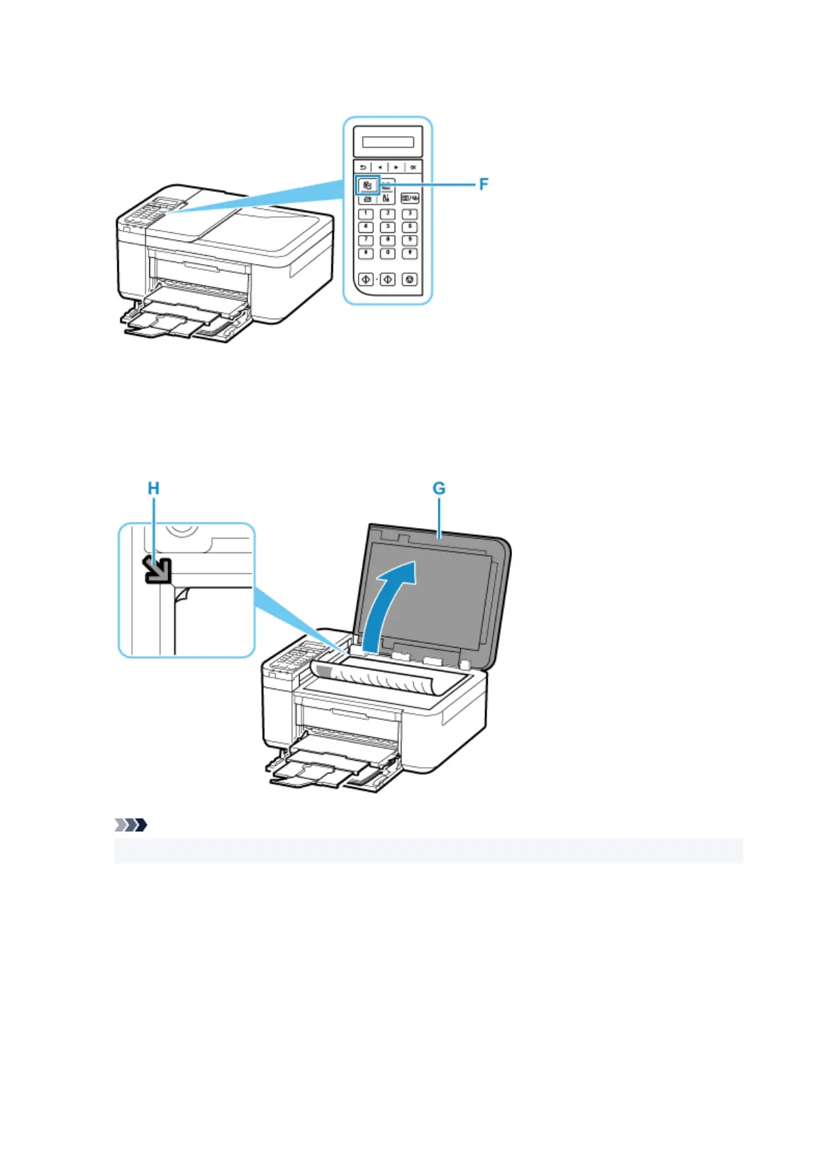 To copy two or more documents continuously, load them in the ADF (Auto Document Feeder).