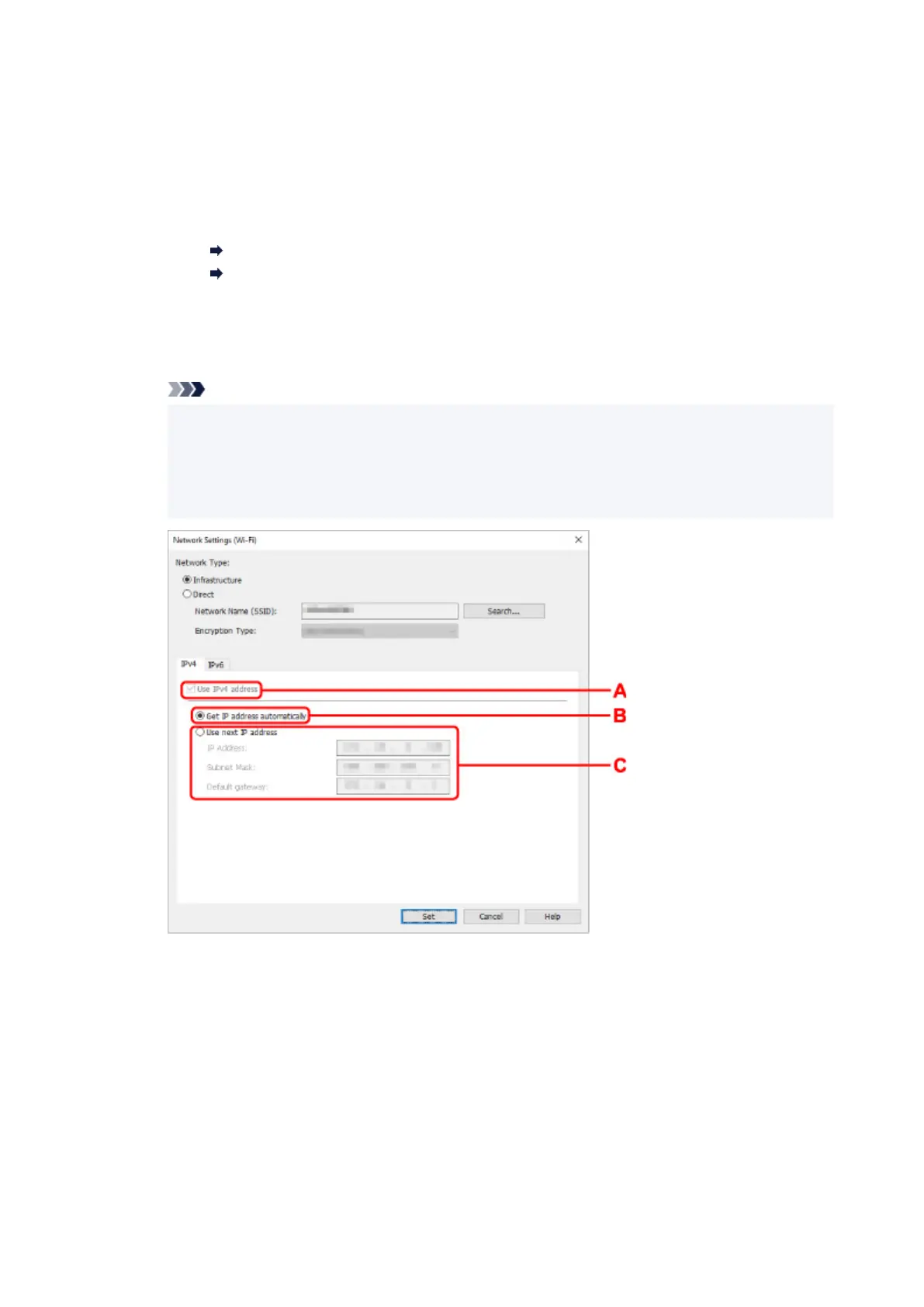 The setting items below are available only when Infrastructure is selected for Network