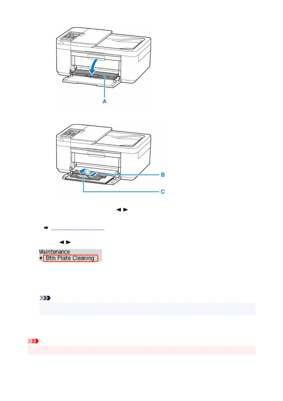 When performing Bottom Plate Cleaning again, be sure to use a new piece of paper.