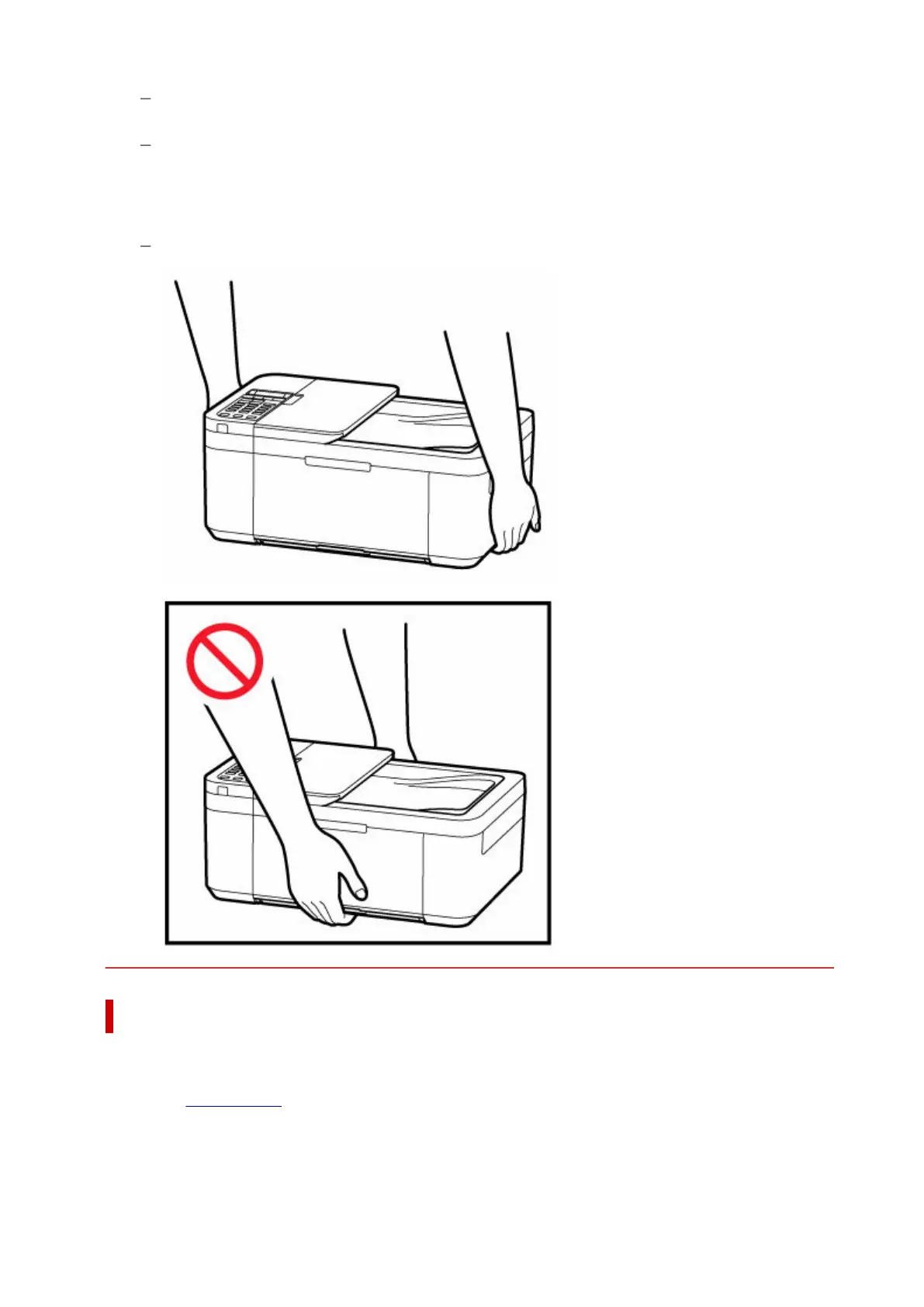 Hold the printer by its sides and carry it with both hands.