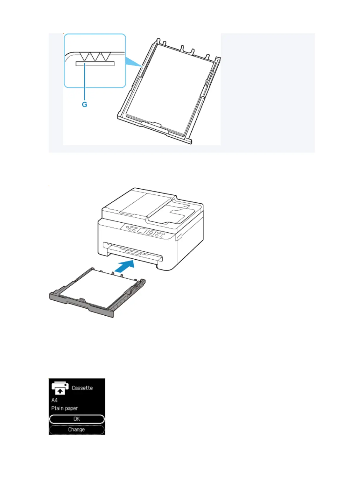 After inserting the cassette into the printer, the paper setting confirmation screen for the cassette