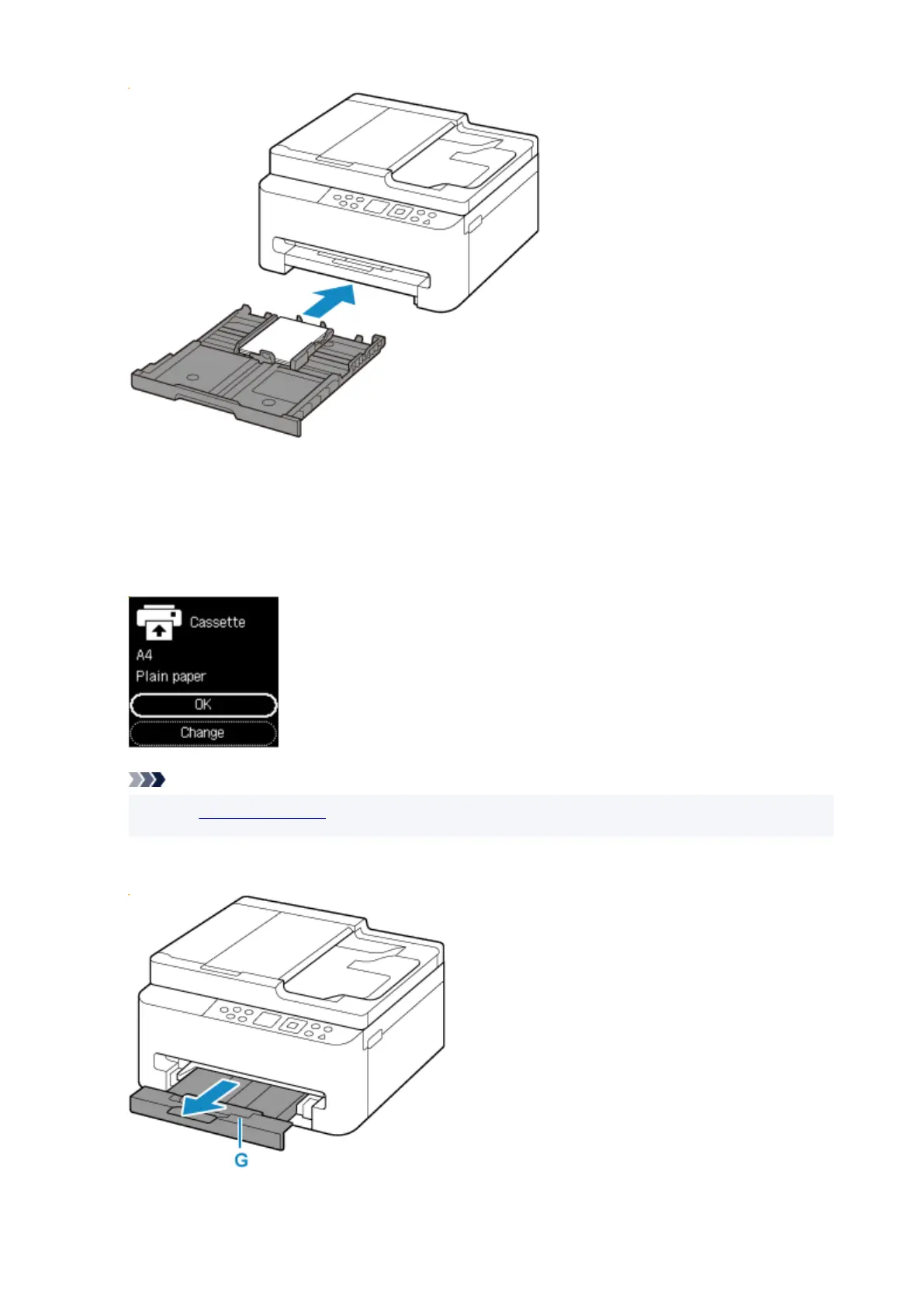 After inserting the cassette into the printer, the paper setting confirmation screen for the cassette
