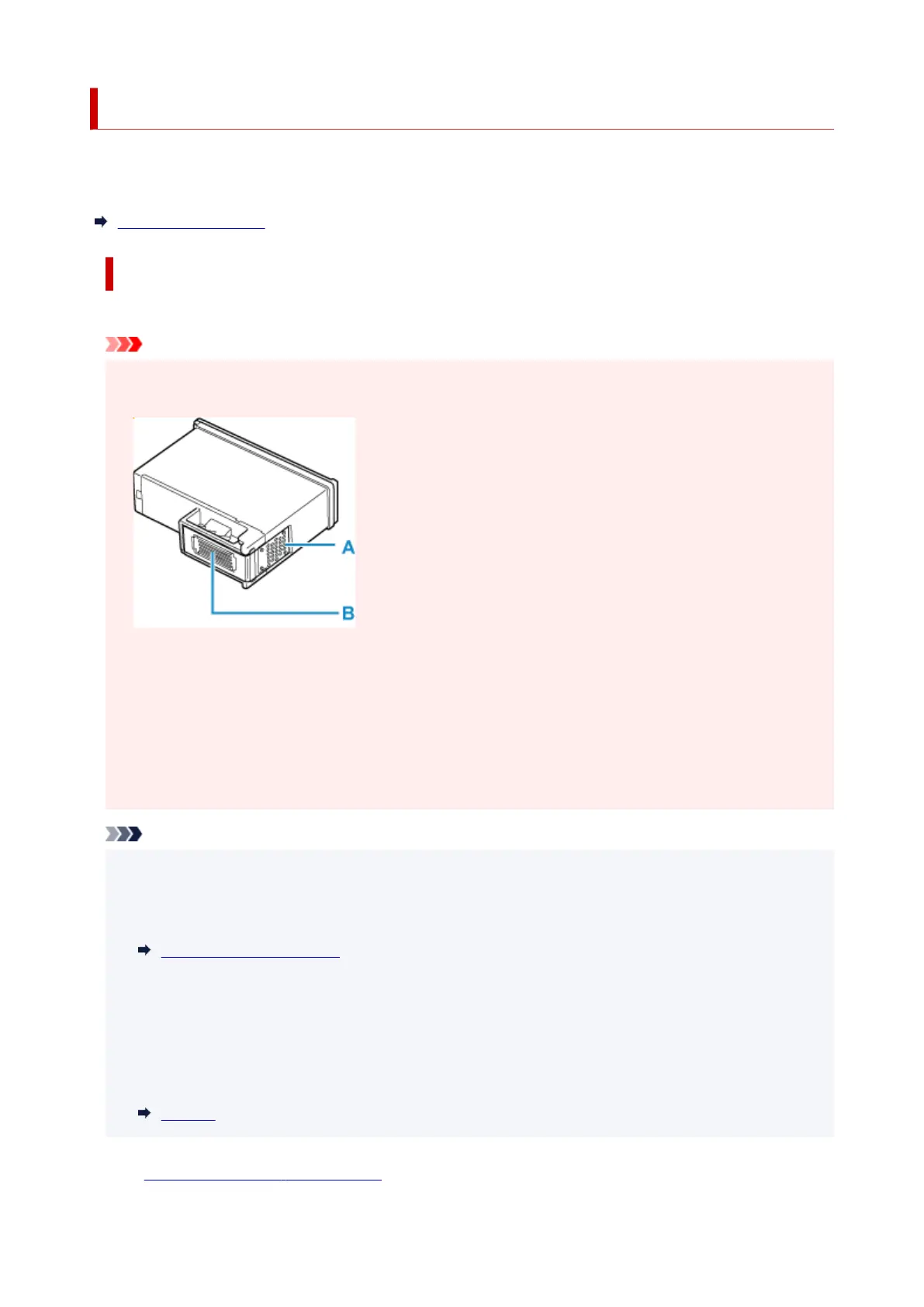 • Do not touch the electrical contacts (A) or print head nozzle (B) on a FINE cartridge. The printer may•