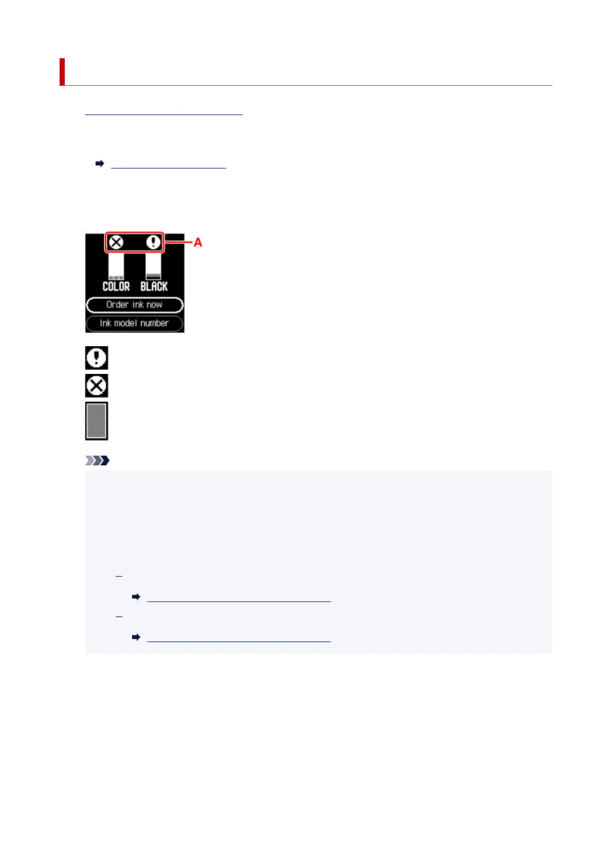 A symbol appears in the area A if there is any information about the remaining ink level.