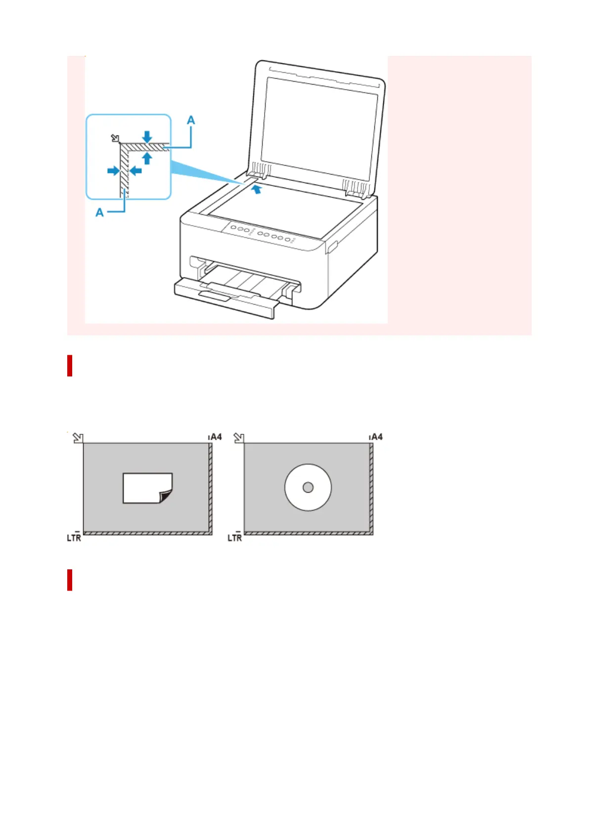 between the edges (diagonally striped area) of the platen. Portions placed on the diagonally striped area