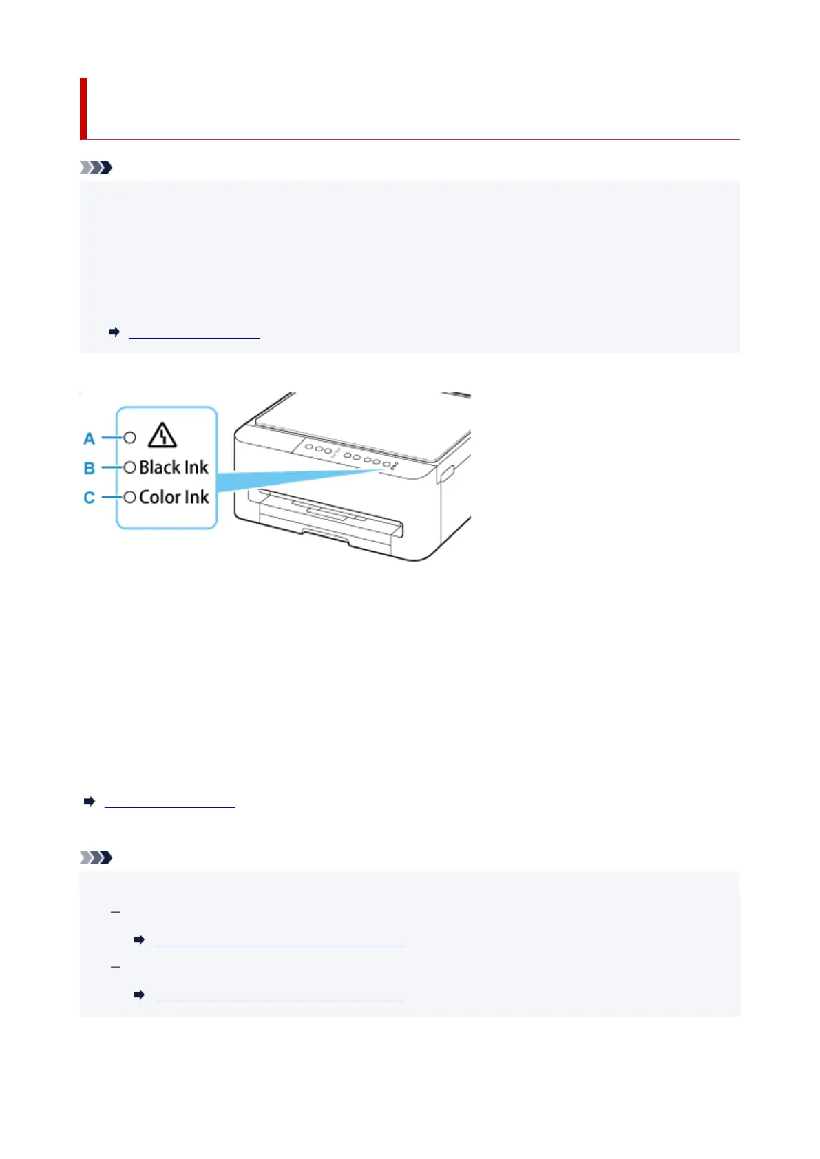 Color Ink lamp or Black Ink lamp flashes, while Alarm lamp flashes