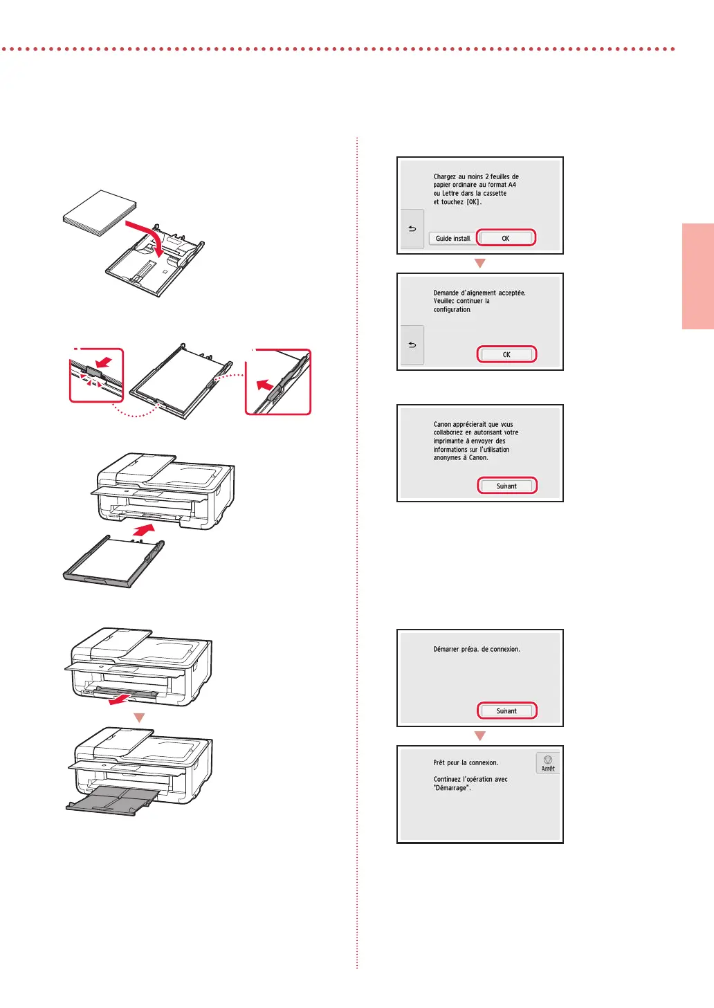 alignez le guide papier droit sur la largeur du papier.