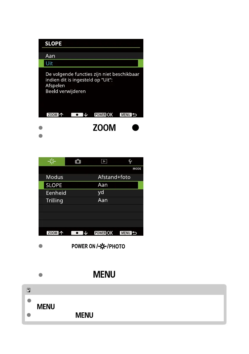 Bij de beschrijving van menufuncties wordt hierna verondersteld dat u op de knop