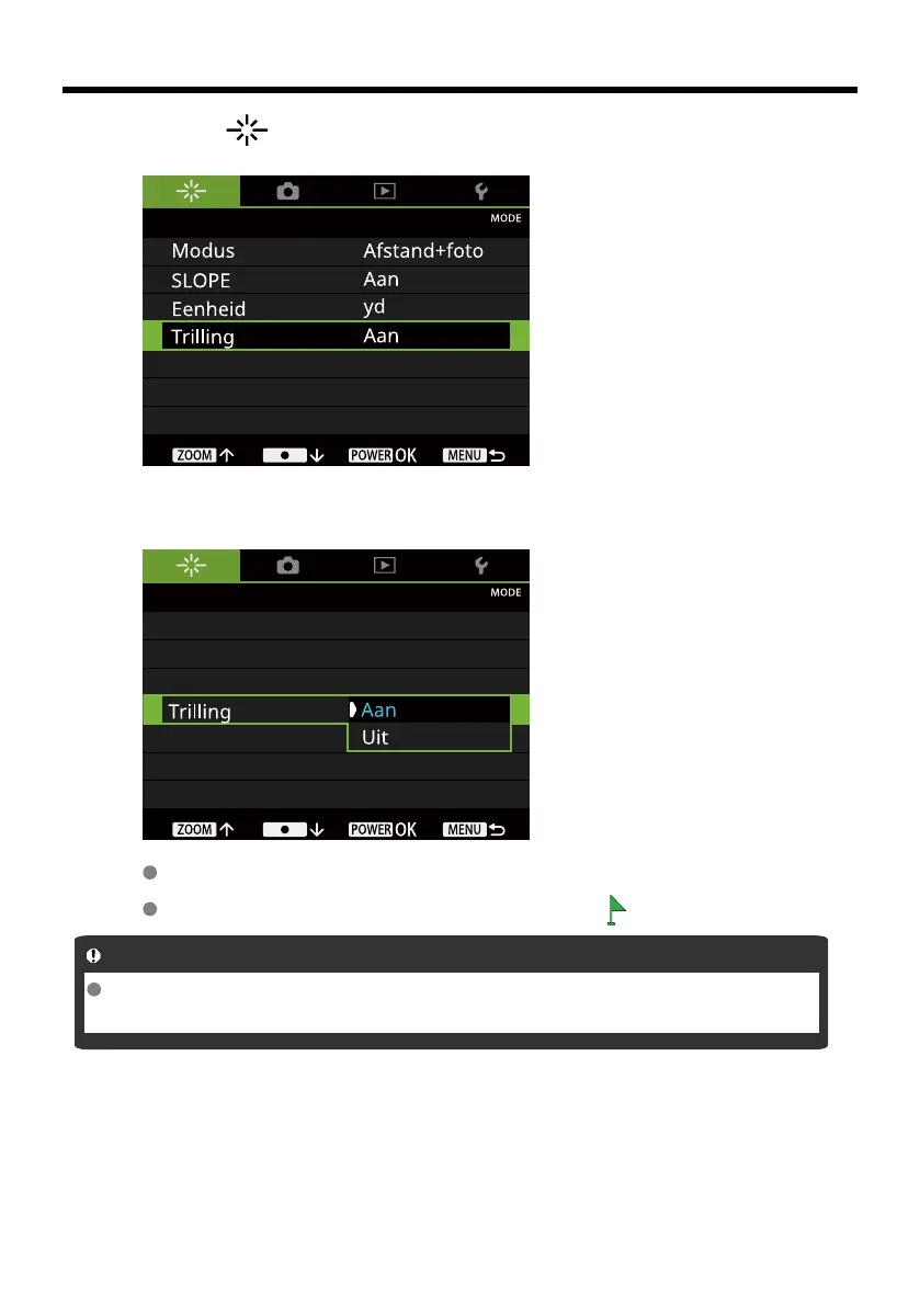 Continue meting: trilling nadat het symbool van de vlag verschijnt.