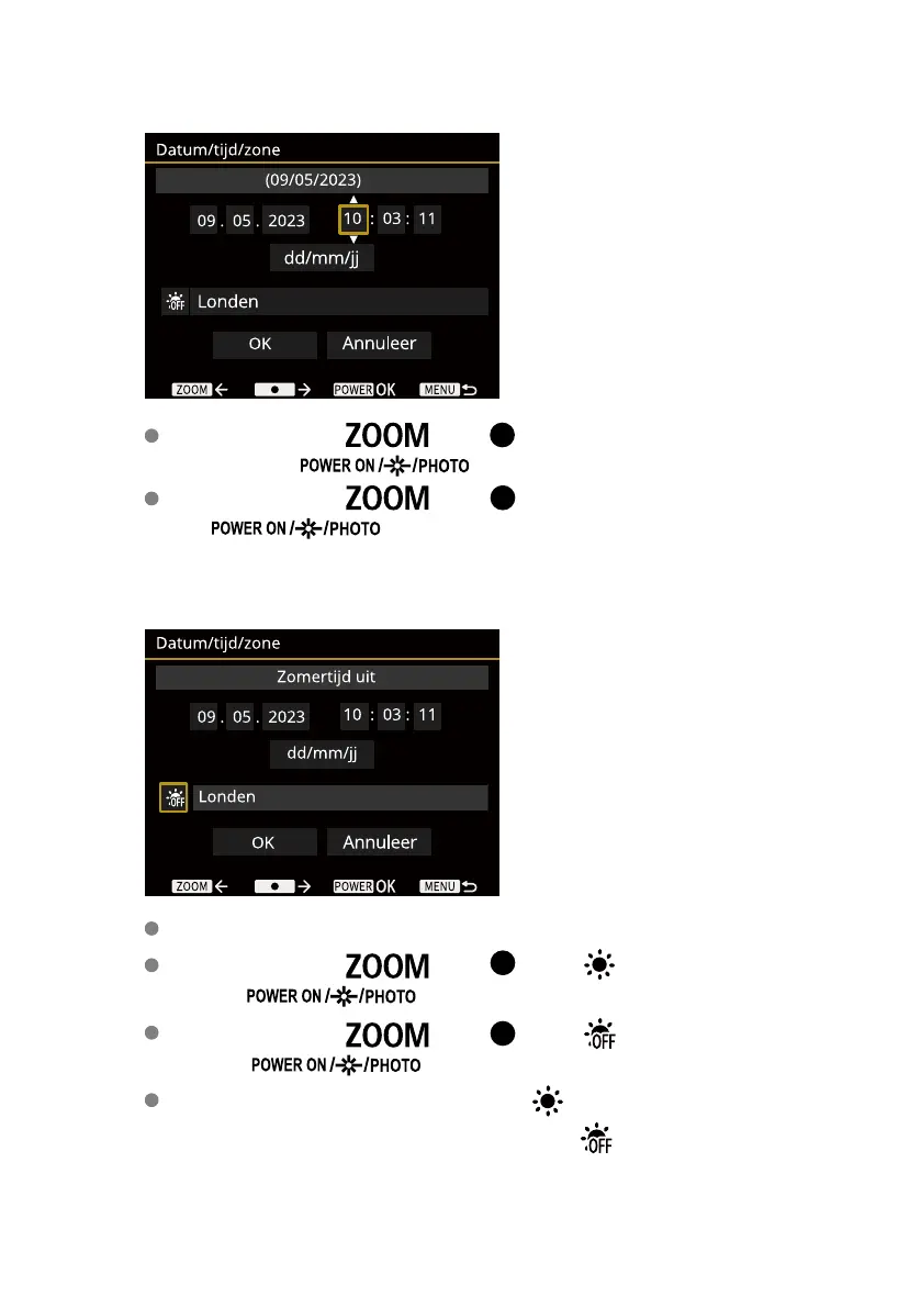 3 hebt ingesteld, één uur vooruitgezet. Als [ ] is ingesteld, wordt de