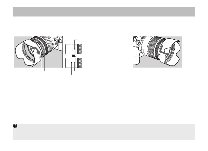 If the hood is not attached properly, vignetting (darkening of the perimeter of the picture) may occur.