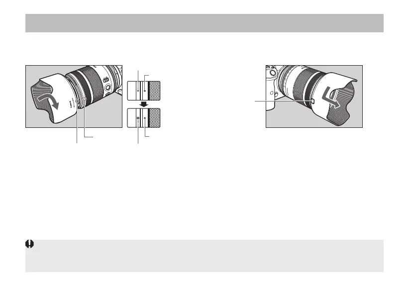 If the hood is not attached properly, vignetting (darkening of the perimeter of the picture) may occur.