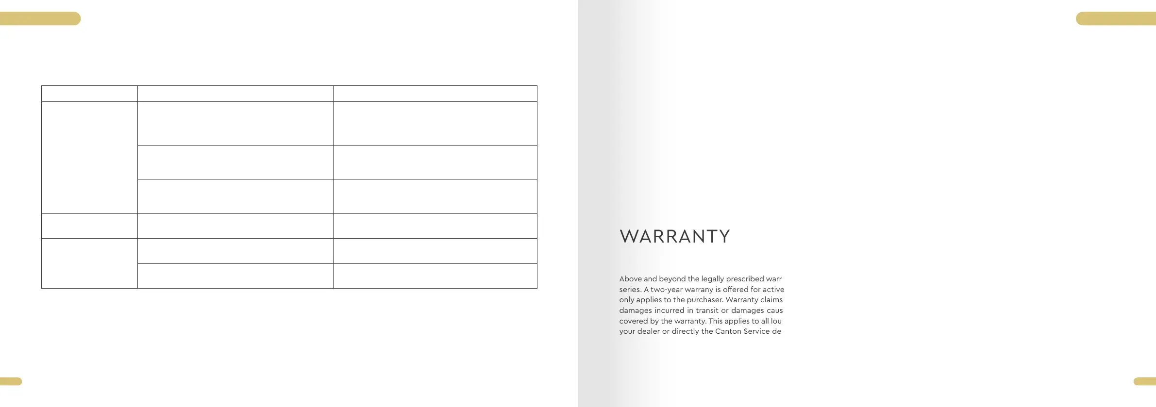Above and beyond the legally prescribed warranty period Canton offers a warranty of 10 years on all its passive loudspeakers of the Reference