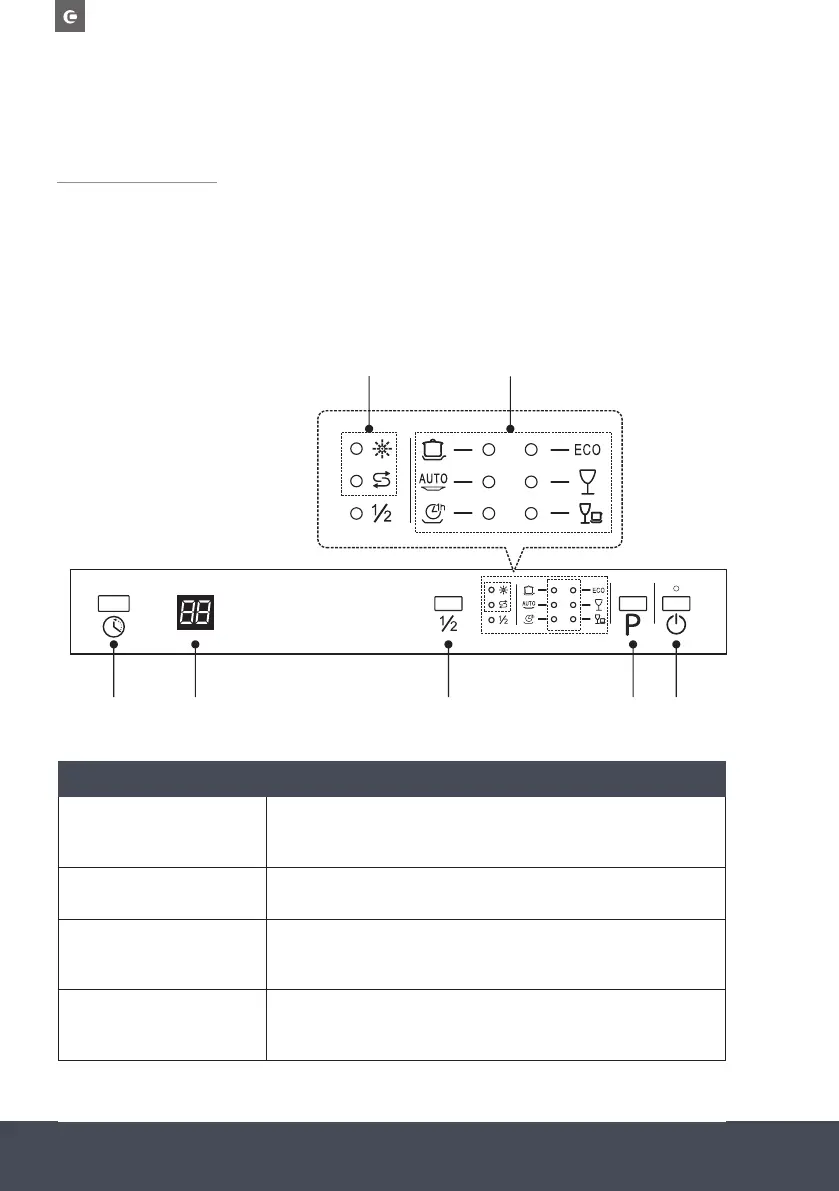 1 - POWER Press this button to turn on your dishwasher, the screen lights up.