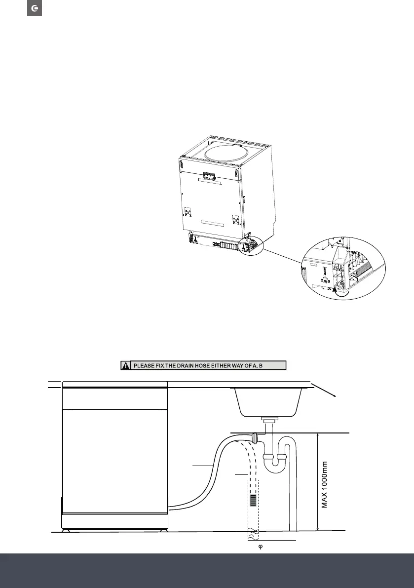 Insert the drain hose into a drain pipe with a minimum diameter of 40mm, or let it run into the sink, making sure to