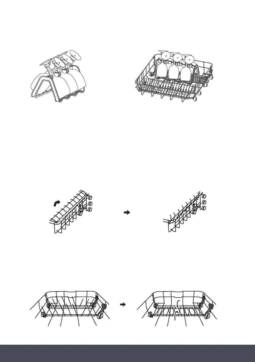 To make room for taller items in the upper basket, raise the cup rack upwards. You can then lean