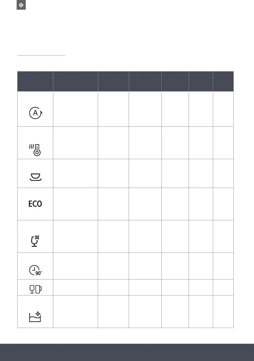 The table below shows which programs are best for the levels of food residue