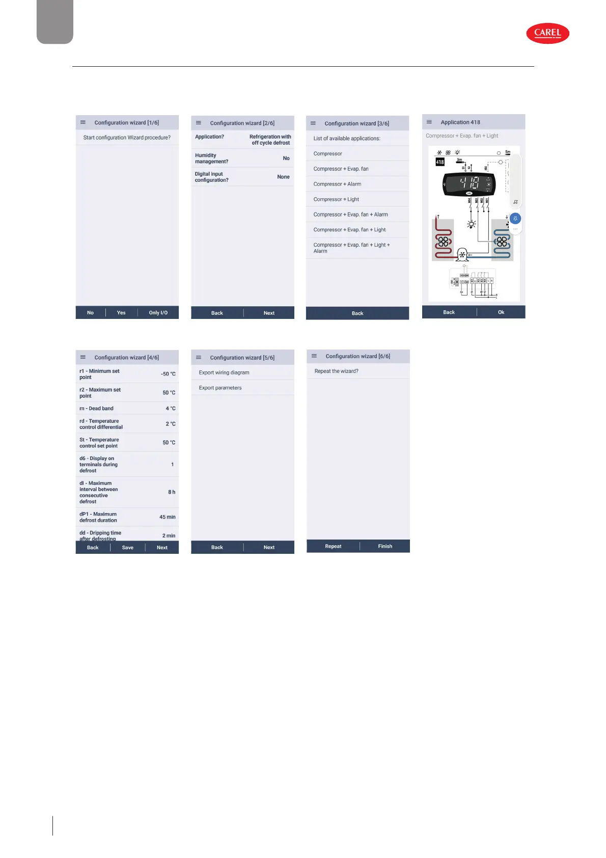 skipped, the app proposes the confi guration wizard, used to select the desired confi guration, set the main parameters and save