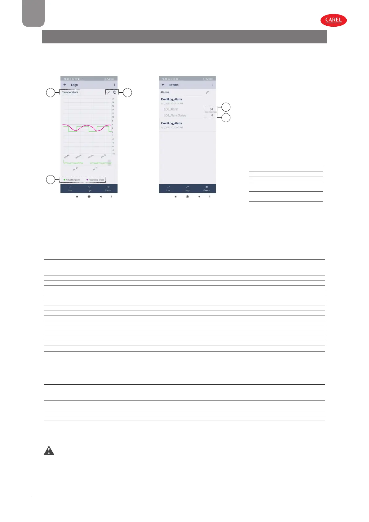 The type of alarm recorded in the log can be identifi ed using the alarm code (see the Alarm table).