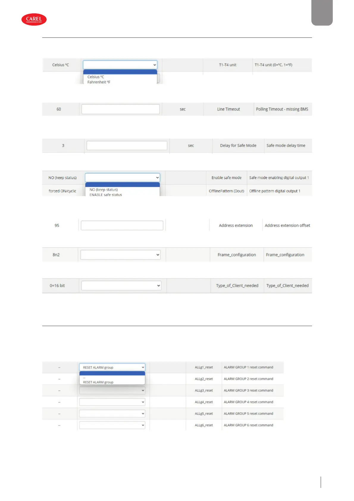 • Estensione indirizzo seriale (Fare riferimento a 3.6.2 Collegamento con sistema di supervisione CAREL - Assegnare alla scheda
