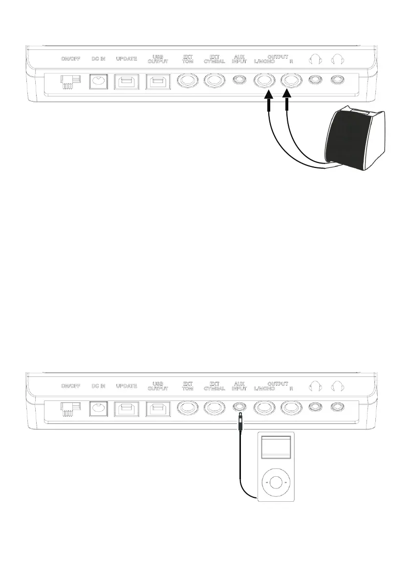 2.Connect two mono 6.35mm (1/4? instrument cables to the Left and Right output sockets.