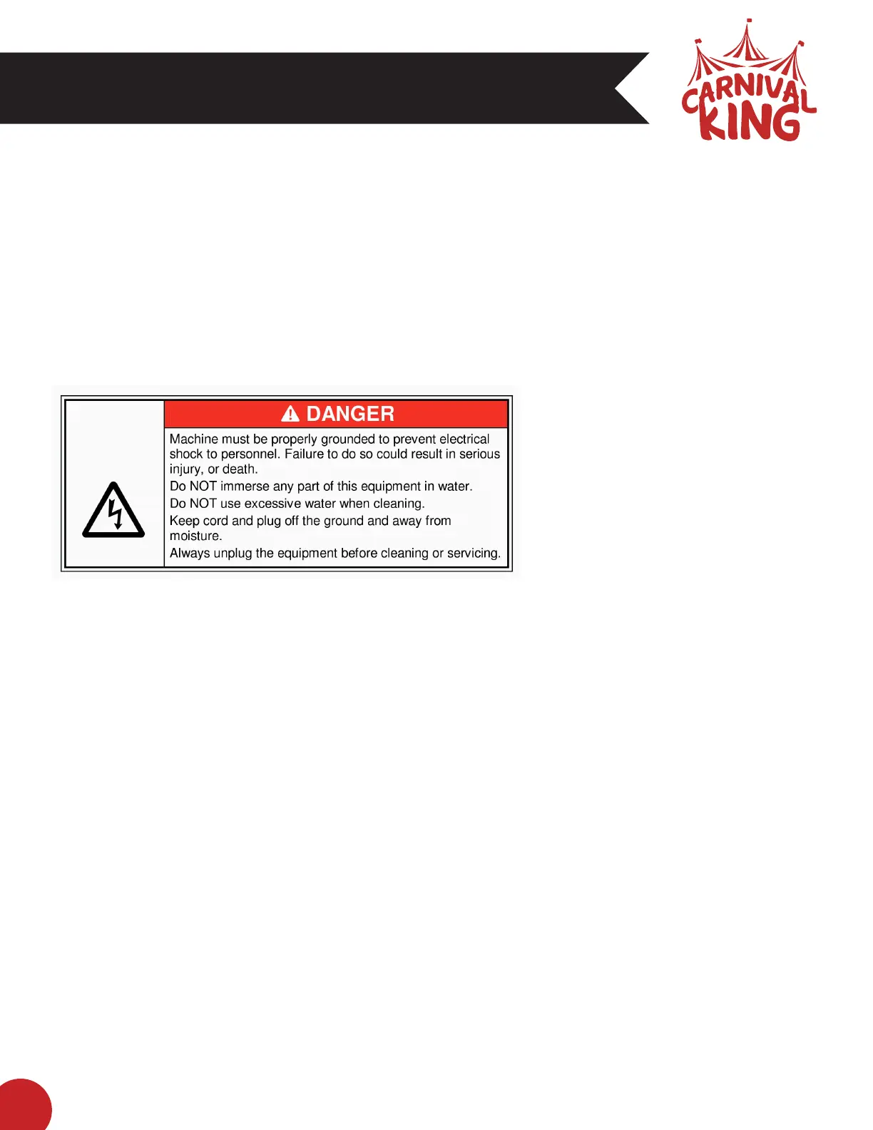 machine. It is recommendation that this machine be plugged directly into a wall outlet. The use of extension cords is