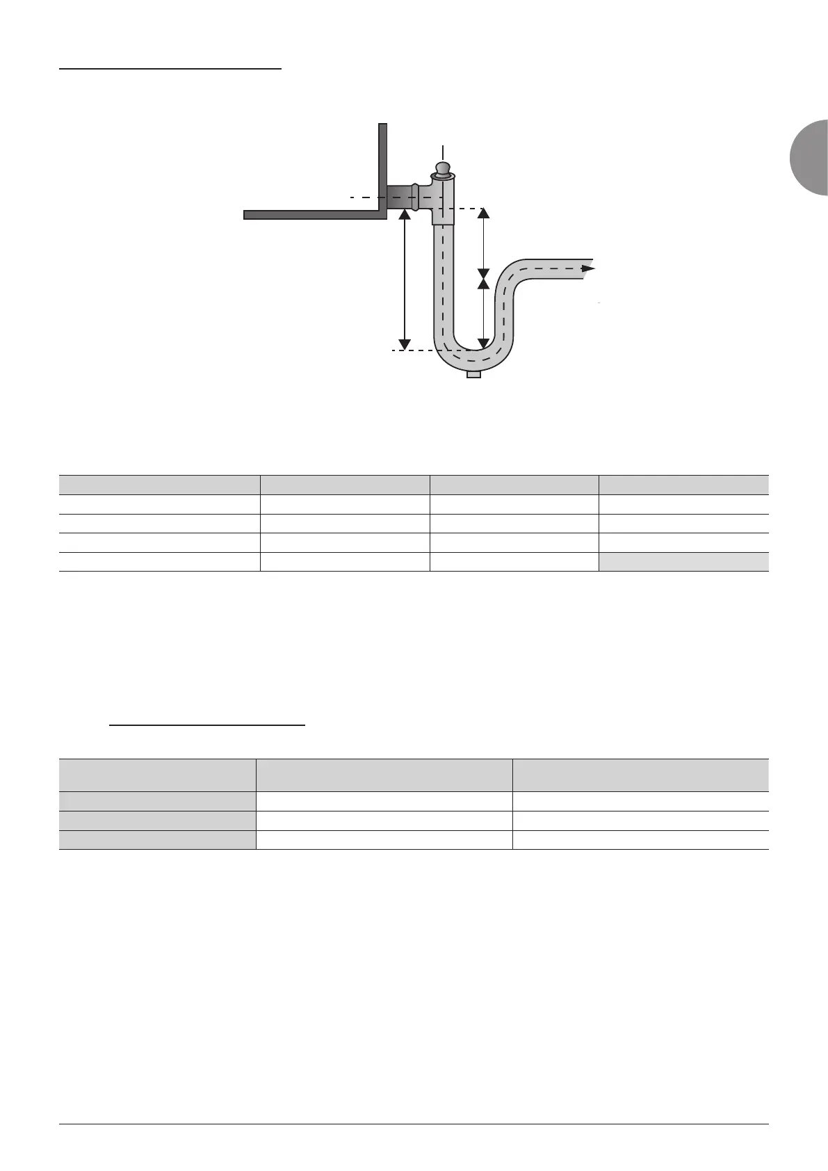Bei einem Unterdruck von H im Bereich des Kälteregisters muss die Höhe des Siphons 2H betragen.