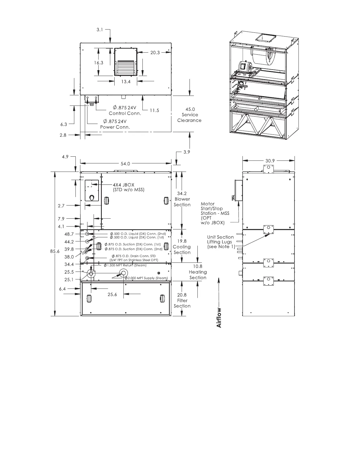 1. Unit section lifting lugs (shipped loose) for lifting sections only. Do not use lifting lugs for lifting unit assembly.