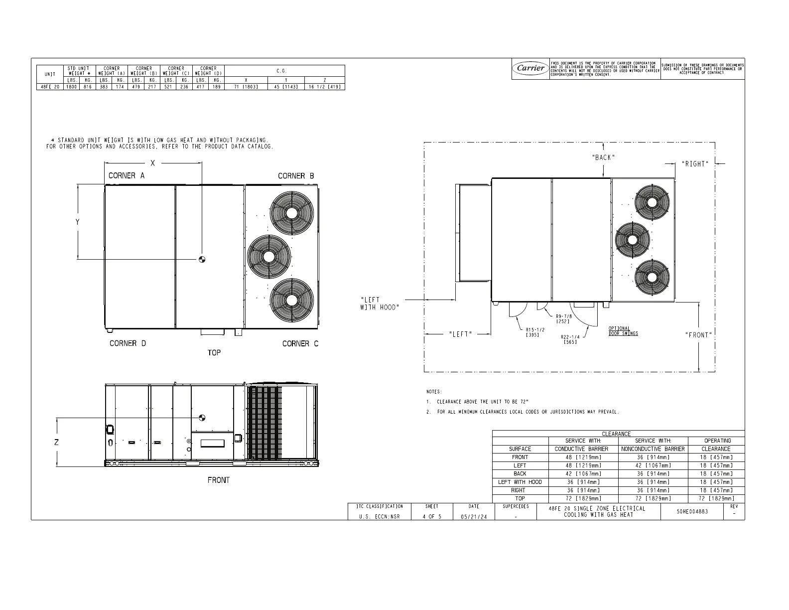 Fig. 5 — 48FE**20 Corner Weights and Clearances