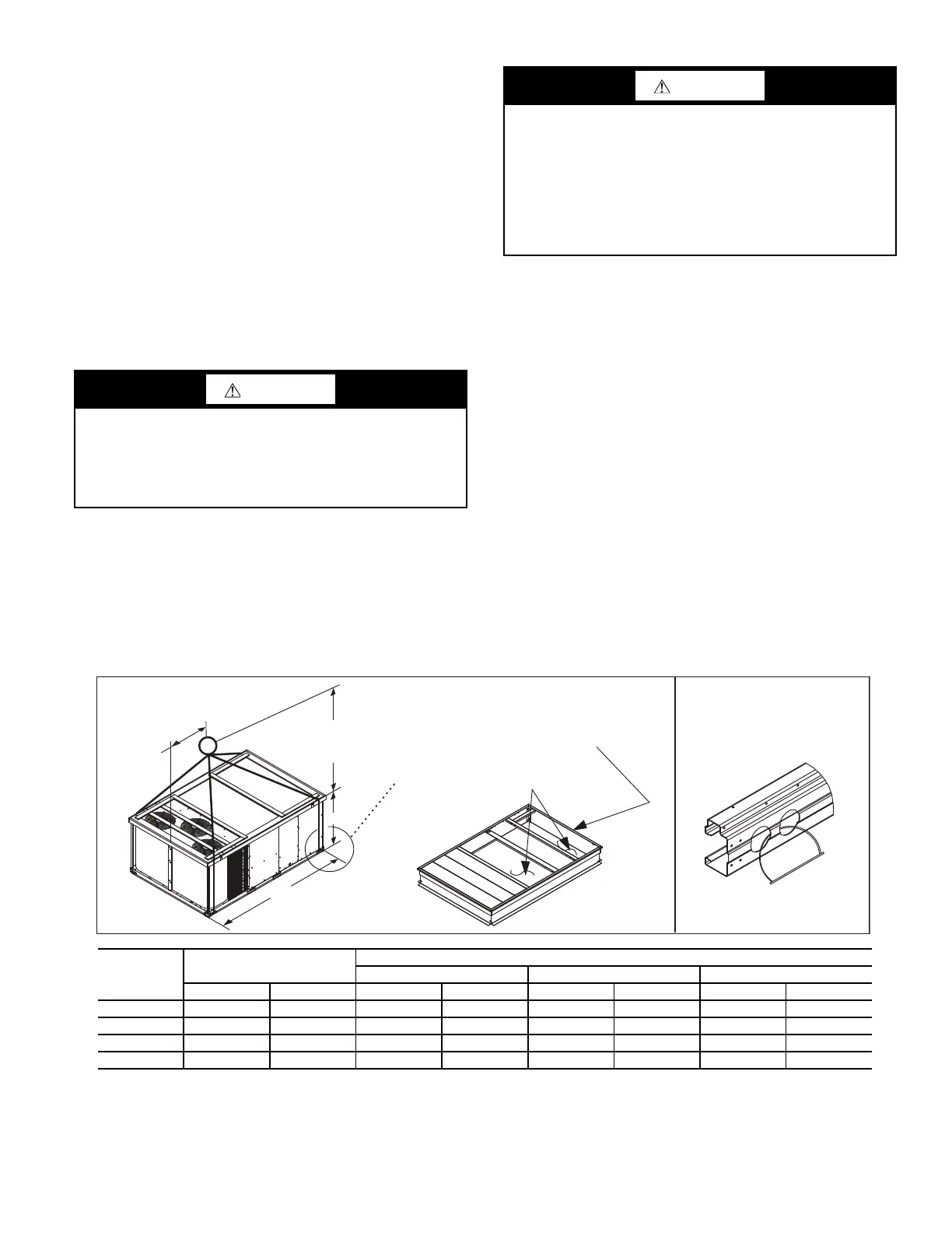 2. Hook rigging shackles through holes in base rail, as shown in detail “A.” Holes in base rails are centered around the unit center of gravity.