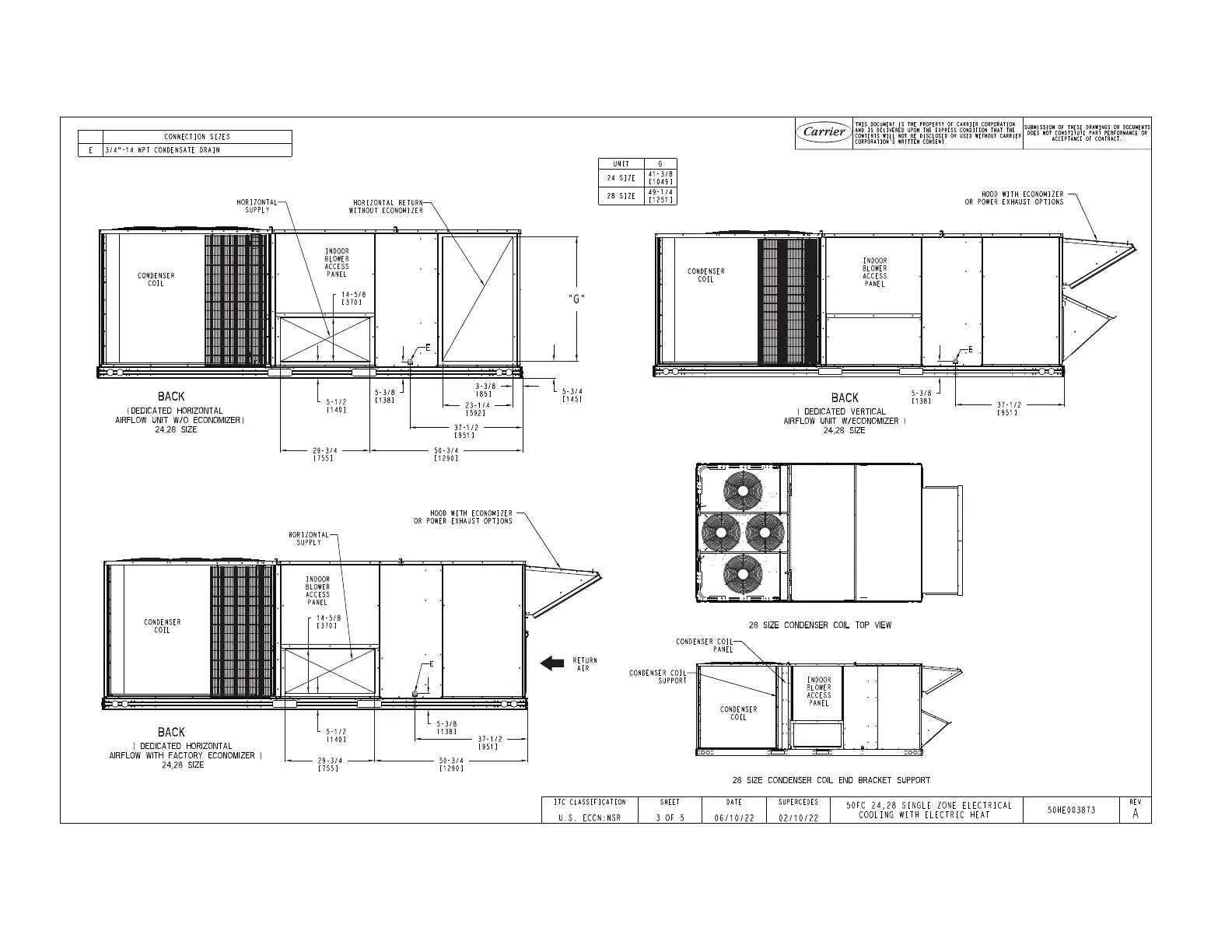 Fig. 9 — 50FC-*24-28 Back View and Condensate Drain Location